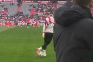 在比赛开始前的热身环节,诺伊尔在接长传球时展示了花式停球,将球稳稳停在地上,一旁正在直播的记者难以置信惊叹连连。
