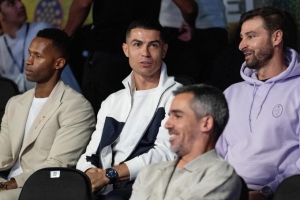 笼式网球顶级赛事Premier Padel P1在沙特利雅得举办,C罗、特奥、菲利克斯、比利亚、大卫·席尔瓦现场观看比赛。
