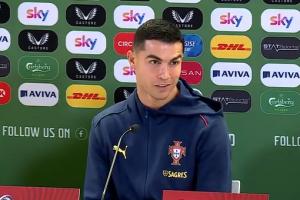 体育资讯11月13日讯 葡萄牙对阵爱尔兰的赛前,C罗出席发布会接受采访。