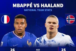体育资讯11月15日讯 德国转会市场社媒晒出图片,对比了梅西、C罗、姆巴佩、哈兰德的国家队数据。