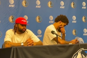 体育资讯11月20日讯 NBA常规赛,独行侠在主场以111-113不敌尼克斯。赛后,拉塞尔和马绍尔一起出席了发布会。