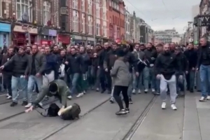 克拉克在X平台上表示:“今天在都柏林,我本想是拍摄一场游行,但他们抢走了我的相机并将史蒂夫推倒。他们还踢他的头,他无法起身,他们继续踢他。他们是沙尔克04的足球流氓,我感到非常震惊和厌恶!”