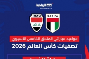 世预赛亚洲区第五阶段,将由阿联酋与伊拉克进行主客两回合较量,胜者将获得洲际附加赛资格。