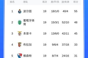 第二名的葡萄牙体育也仅遭遇1败;而穆里尼奥执教的本菲卡虽然联赛不败,但因平局过多,排名第3,落后榜首10分。