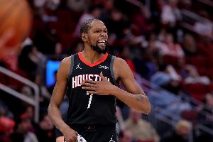 上半场,火箭球星杜兰特表现不错,得分串联一把抓,在16分钟的时间里,投篮11中6,三分球2中1,拿到13分1篮板4助攻的数据。