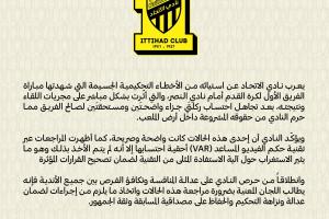 吉达联合俱乐部对其一线队对阵利雅得胜利的比赛中出现的严重判罚失误表示不满,这些失误直接影响了比赛的进程与结果。球队本应获得的两次清晰、合理的点球机会被无视,这剥夺了俱乐部在球场上的正当权益。