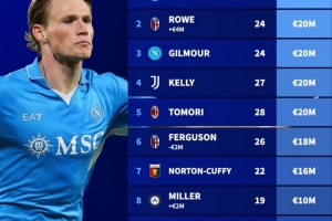 体育资讯3月24日讯 德国转会市场公布了新一期的意甲球员身价情况,并且盘点了在意甲效力的英国球员身价情况,麦克托米奈以4500万欧居首。