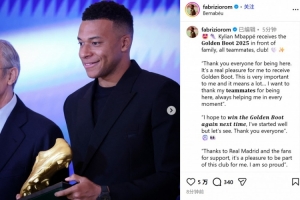 姆巴佩也发表了获奖感言:"感谢大家的到来。能够赢得(欧洲)金靴奖,对我而言是莫大荣幸,也意义非凡……我要感谢我的队友们,感谢他们一直陪伴在我的身边,始终给予我支持。"