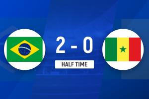 上半场补时2分钟,半场结束,巴西2-0塞内加尔。