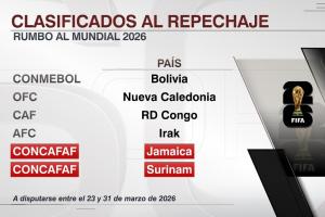 体育资讯11月19日讯 世预赛中北美及加勒比海预选赛结束,2个参加跨洲附加赛的名额确认,牙买加、苏里南获得附加赛资格!