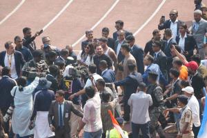 梅西离场后,数万名球迷从看台涌入球场,破坏现场设施,目前估计现场损失达2500万卢比(约合194万元人民币)。