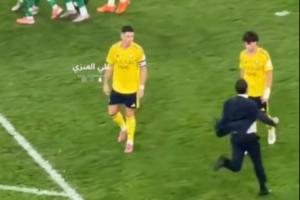 当终场哨声吹响后,吉达国民的葡萄牙籍总监鲁伊·佩德罗·布拉兹冲向场内,经过C罗和菲利克斯时似乎说了些什么,引得二人回头。随后这名总监与自家门将兴奋庆祝,C罗短暂停留后选择走下场,而菲利克斯则不依不饶,与他几番争吵后最终被拉开。